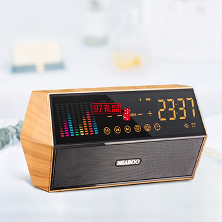 藍(lán)牙音箱木紋時鐘收音機(jī)麥克風(fēng)智能音響定制公司廣告禮品