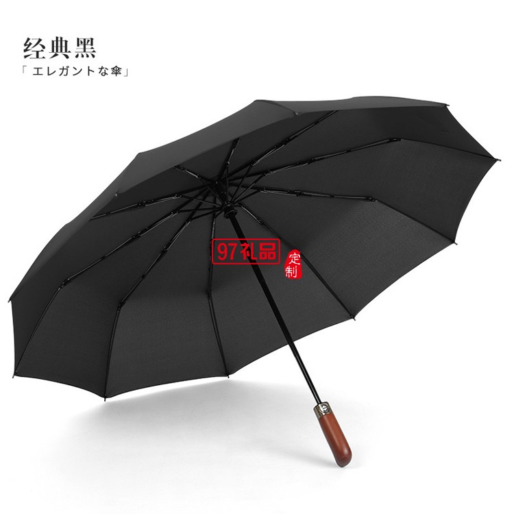 三折全自動(dòng)雨傘折疊傘男商務(wù)實(shí)木復(fù)古紳士雨傘