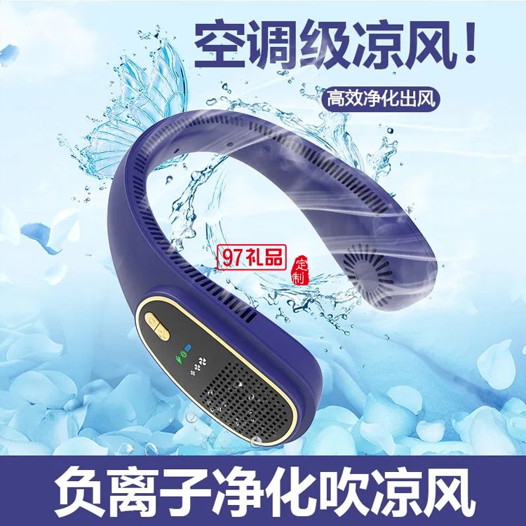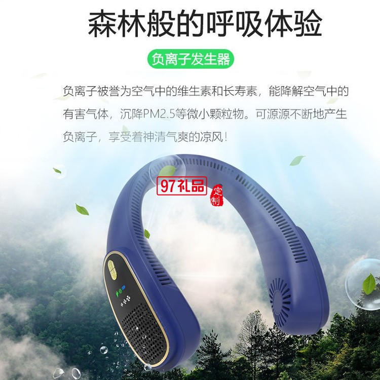 四核無葉風(fēng)扇強(qiáng)力渦輪降溫懶人便攜式頭戴小電扇定制公司廣告禮品