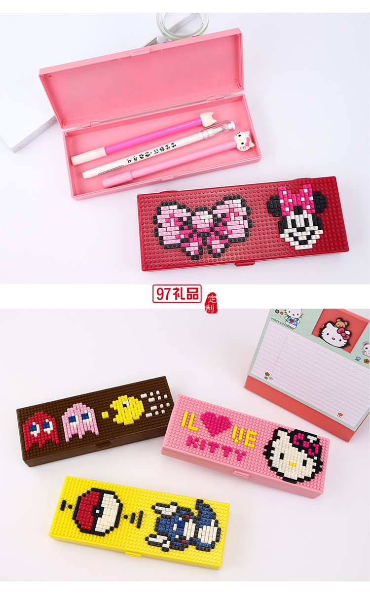 創(chuàng)意兒童拼裝卡通塑料積木文具盒 DIY學(xué)生鉛筆盒