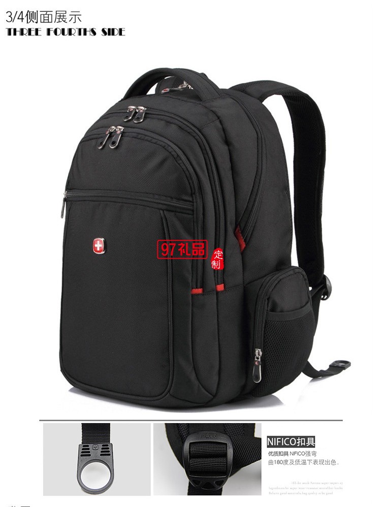瑞士軍刀韓版男黑色潮款背包尚融定制logo