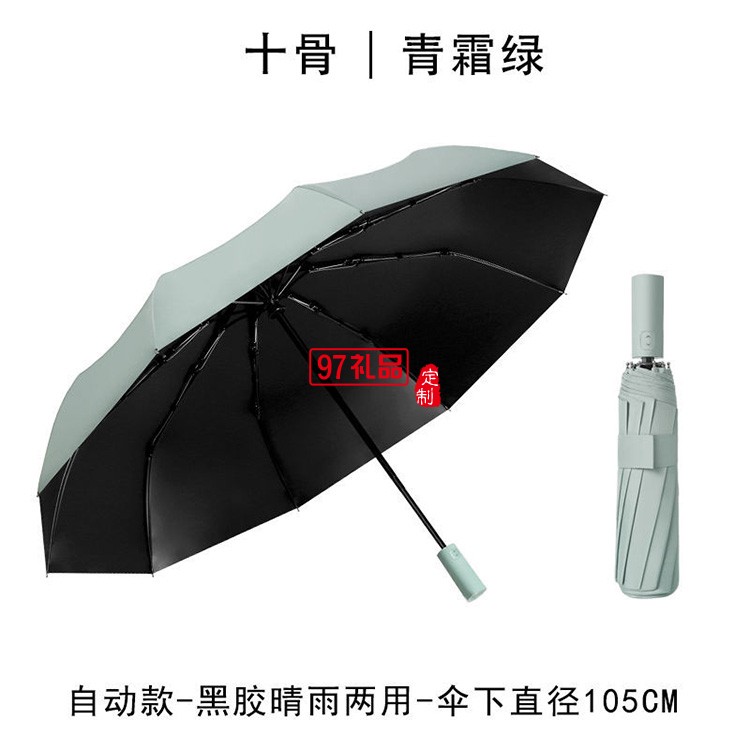 新款12骨黑膠全自動(dòng)雨傘折疊商務(wù)晴雨傘三折遮陽防嗮太陽傘廣告