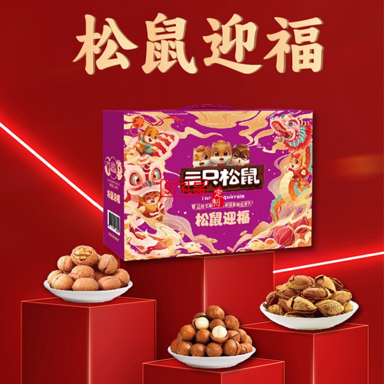 三只松鼠年貨大禮包禮遇系列禮盒混合堅(jiān)果零食送員工福利-松鼠迎福