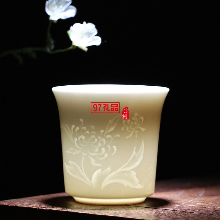 白瓷品茗杯梅蘭竹菊陶瓷茶杯主人杯大號(hào)單杯