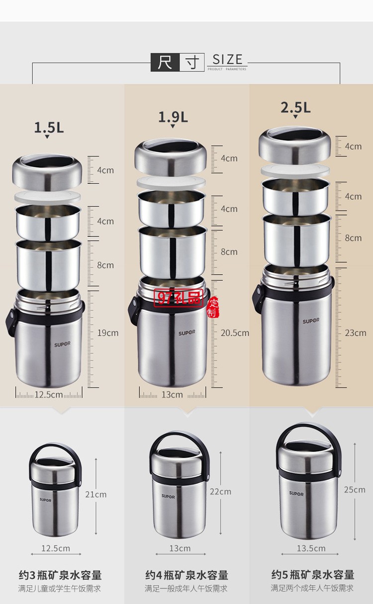 蘇泊爾保溫飯盒 超長保溫桶304不銹鋼大容量多層