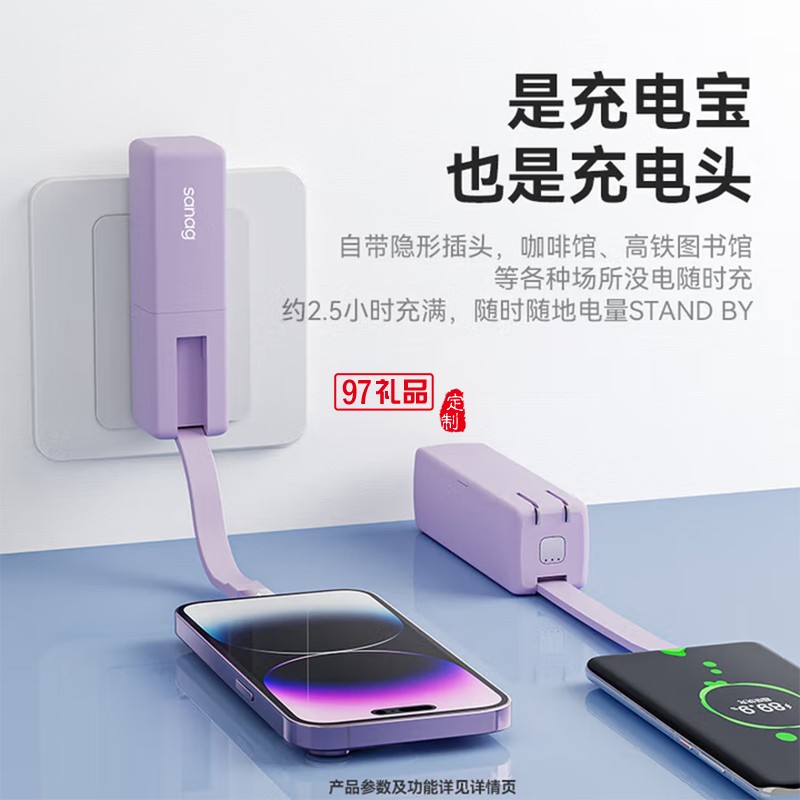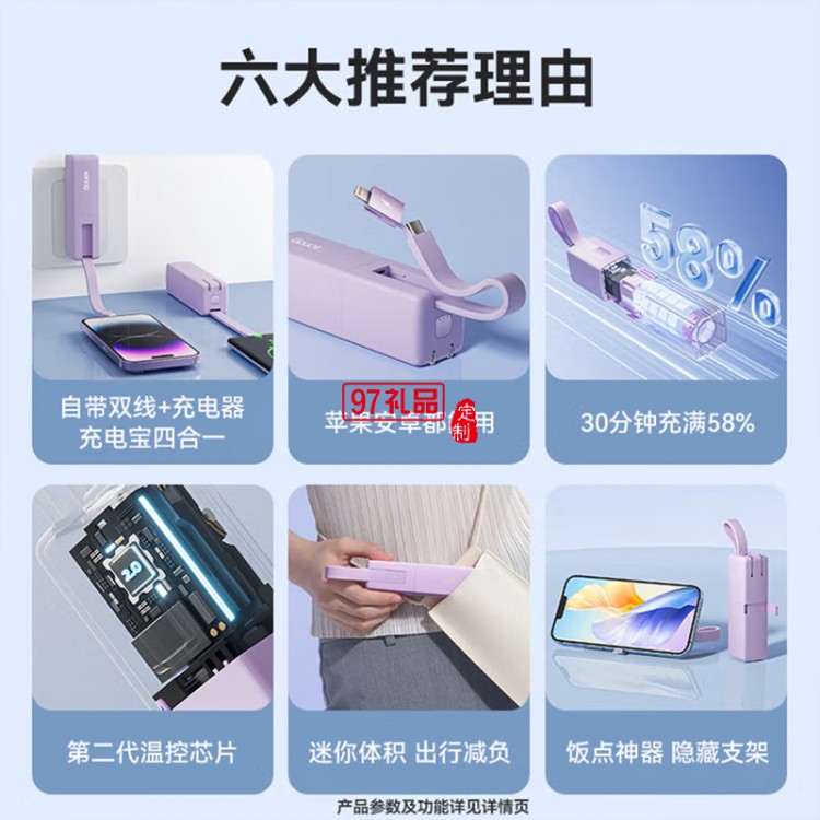 K30充電寶充電器自帶線四合一能量棒蘋(píng)果華為快充帶插頭移動(dòng)電源大容量迷
