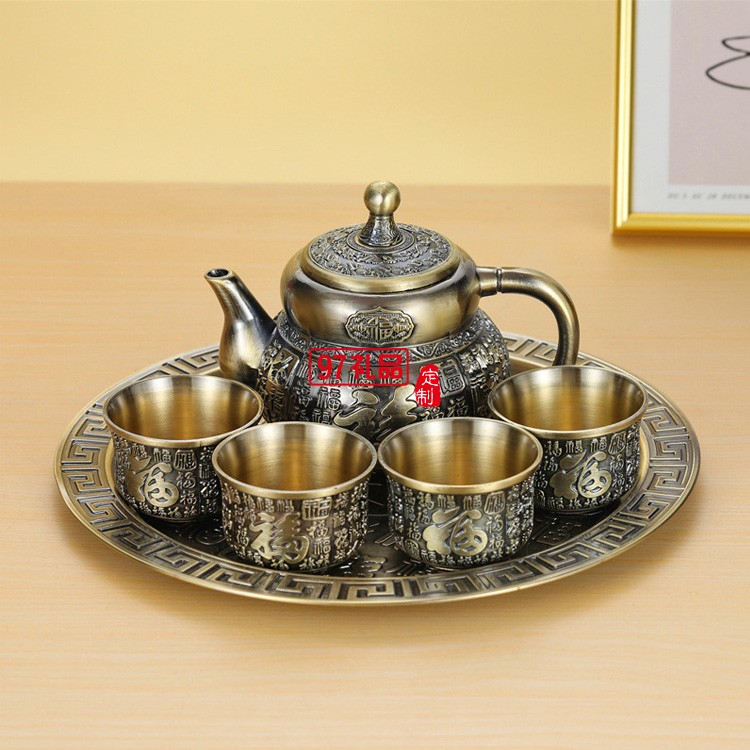 茶具套裝家用復古懷舊金屬茶壺茶杯套裝功夫茶具禮盒包裝