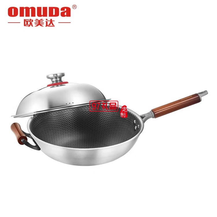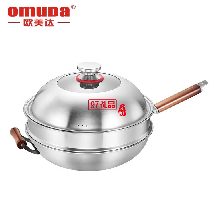 歐美達不銹鋼炒鍋燃氣灶適用電磁爐炒菜鍋 32cm定制公司廣告禮品