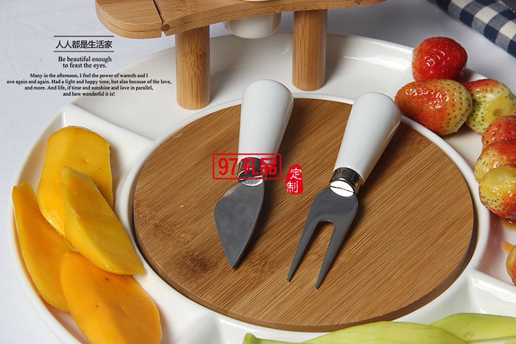 【店家推薦】:設(shè)計(jì)造型很獨(dú)特一款盤(pán),同樣是竹木搭配陶瓷,另外還配上了刀叉跟小牙簽,盤(pán)子中間的木板用完或不用時(shí)可以拿下來(lái)的哈