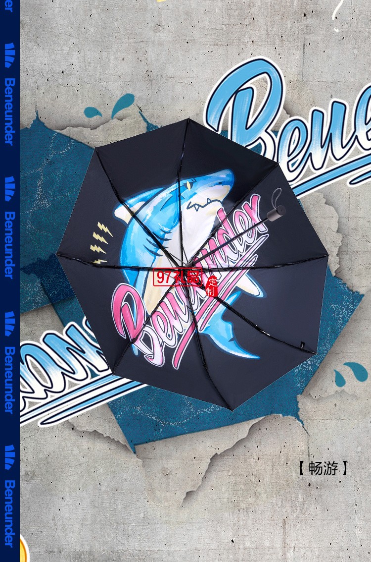 國潮鯊氏比太陽傘女黑膠遮陽防曬晴雨兩用超輕鯊魚包傘定制公司廣告禮品