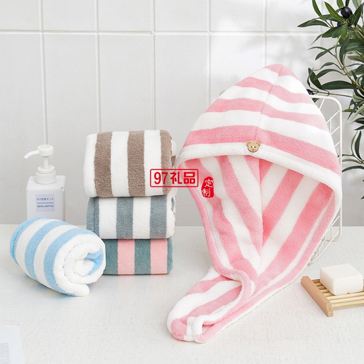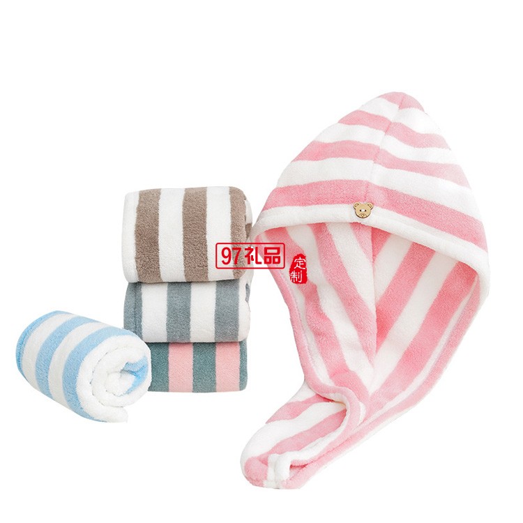 日系超細(xì)纖維加厚珊瑚絨陽(yáng)離子干發(fā)帽可愛包頭巾吸水速干條紋浴帽