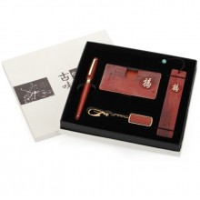 紅木筆記本簽字筆U盤書簽禮品套裝