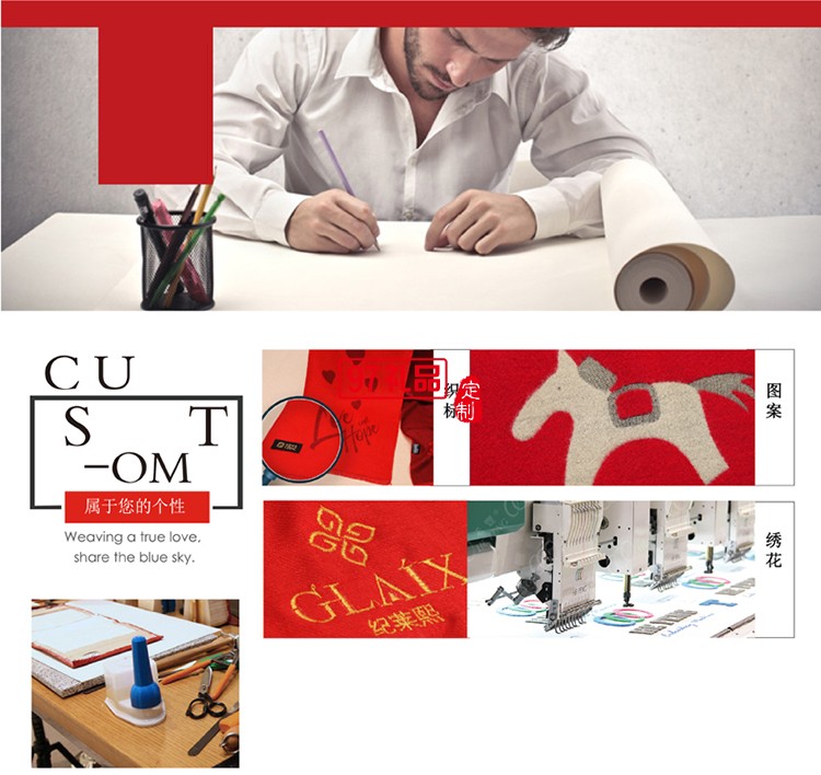 定制流程:選中商品提出定制需求,免費(fèi)策劃設(shè)計(jì),確認(rèn)樣品下單,