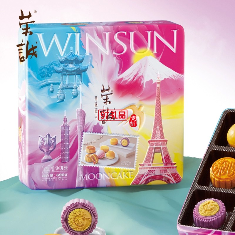 榮誠(chéng)尋味旅人流心月餅法式乳酪廣式蛋黃白蓮蓉中秋送禮盒裝