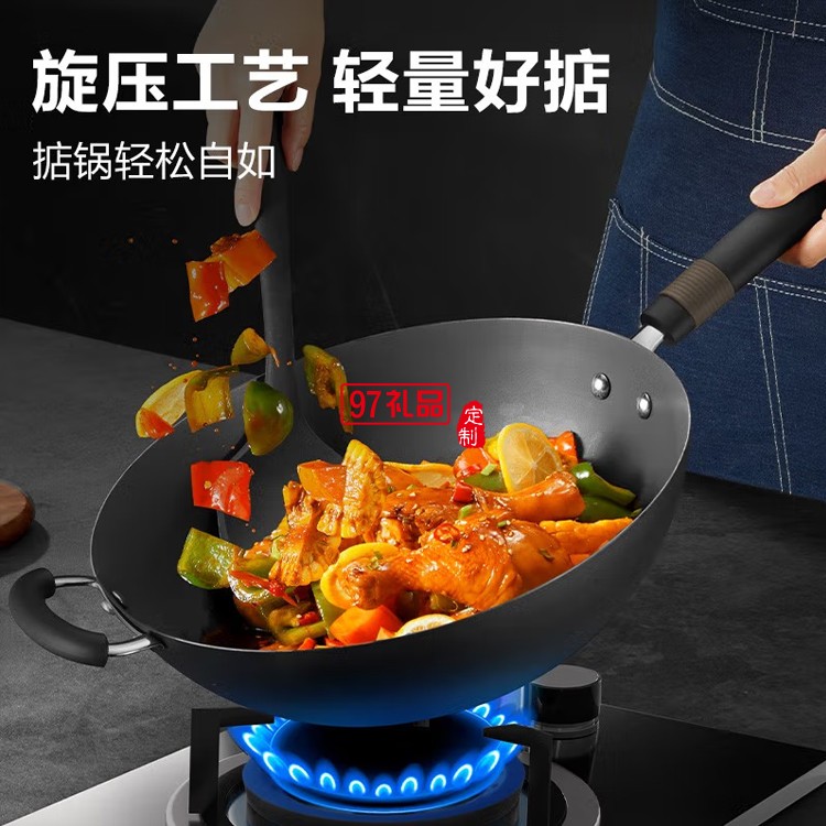 蘇泊爾鐵鍋有鈦無(wú)涂層炒鍋真不銹健康HC34A3定制公司廣告禮品