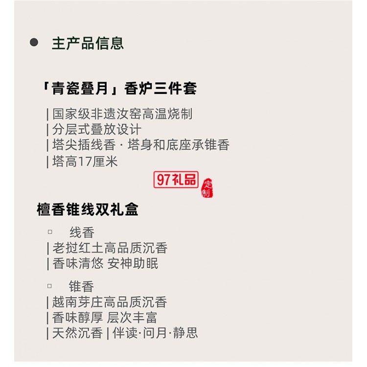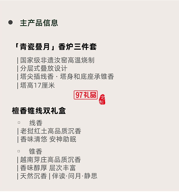 1.「青瓷疊月」香爐三件套