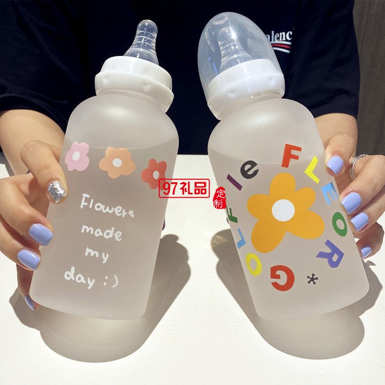 可愛奶嘴奶瓶水杯ins塑料網(wǎng)紅帶吸管杯子