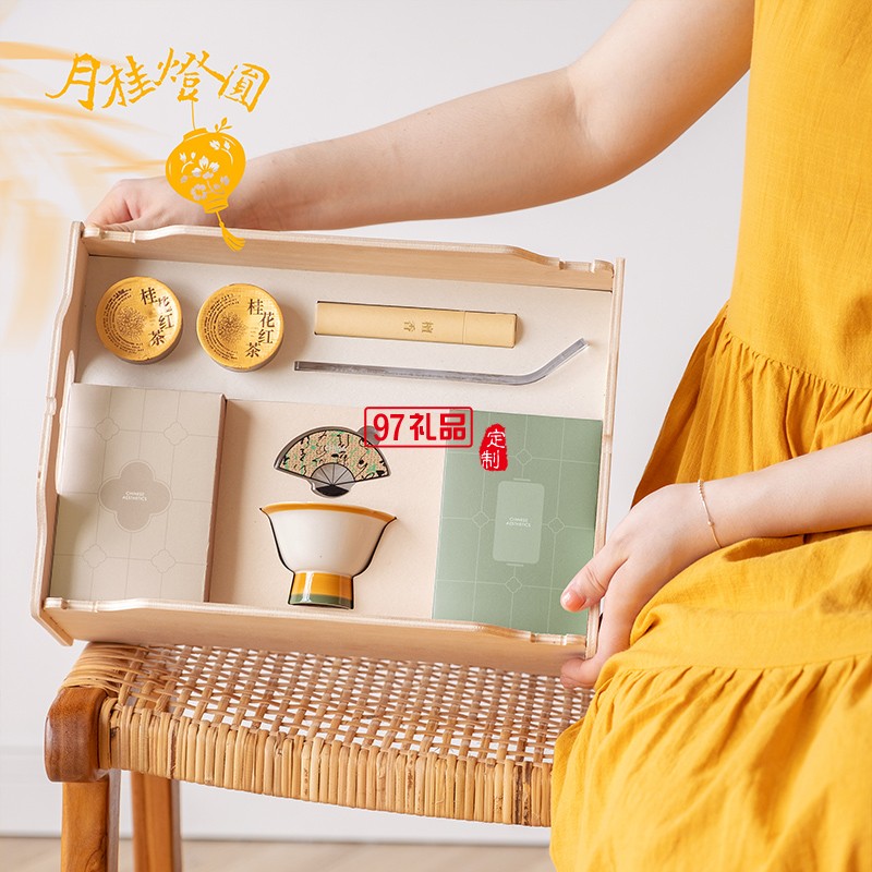 月桂燈圓巧榫木盒月餅禮盒套裝