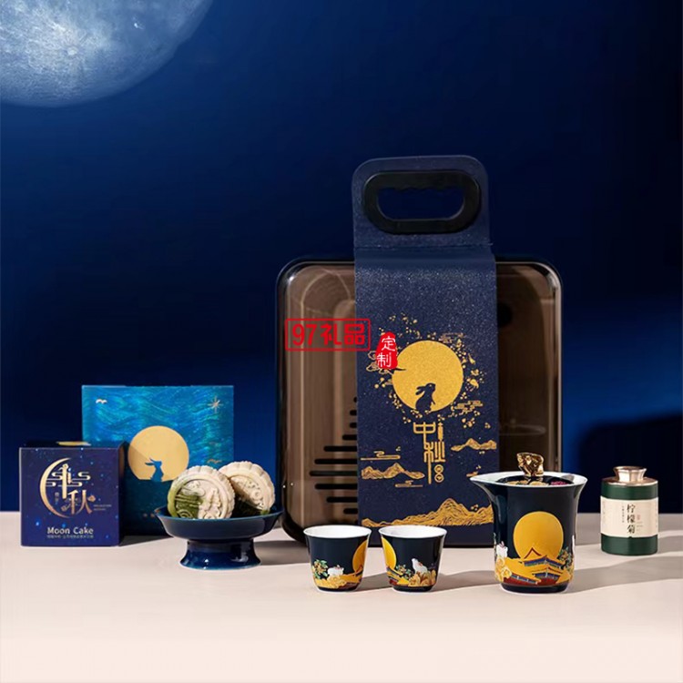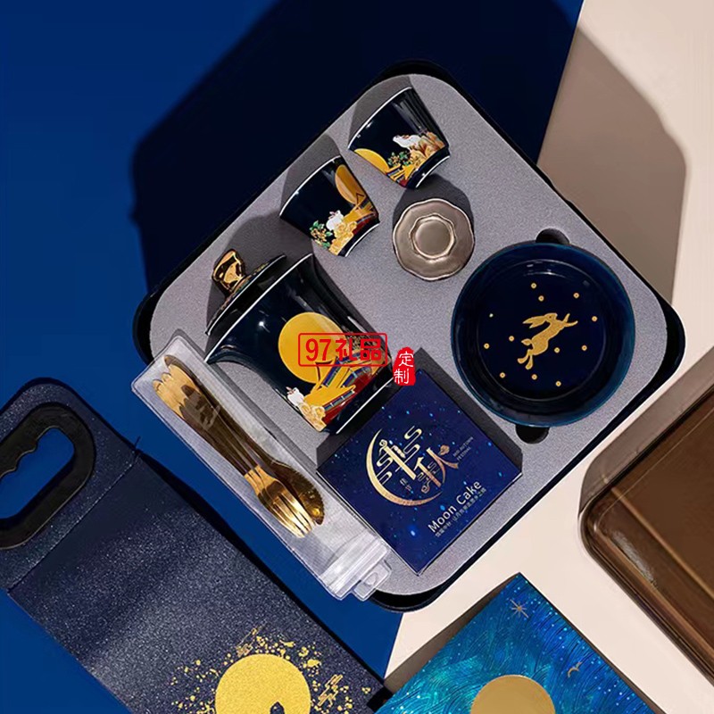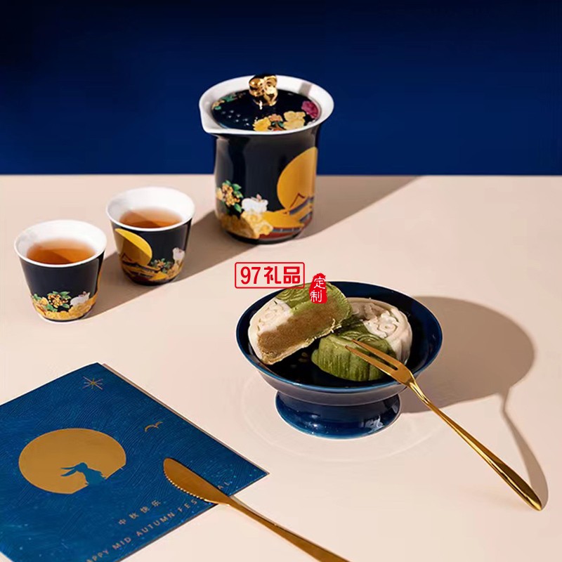 中秋桂月團(tuán)圓?國(guó)風(fēng)陶瓷茶具套裝 手繪玉兔品茗杯壺 送禮盒裝