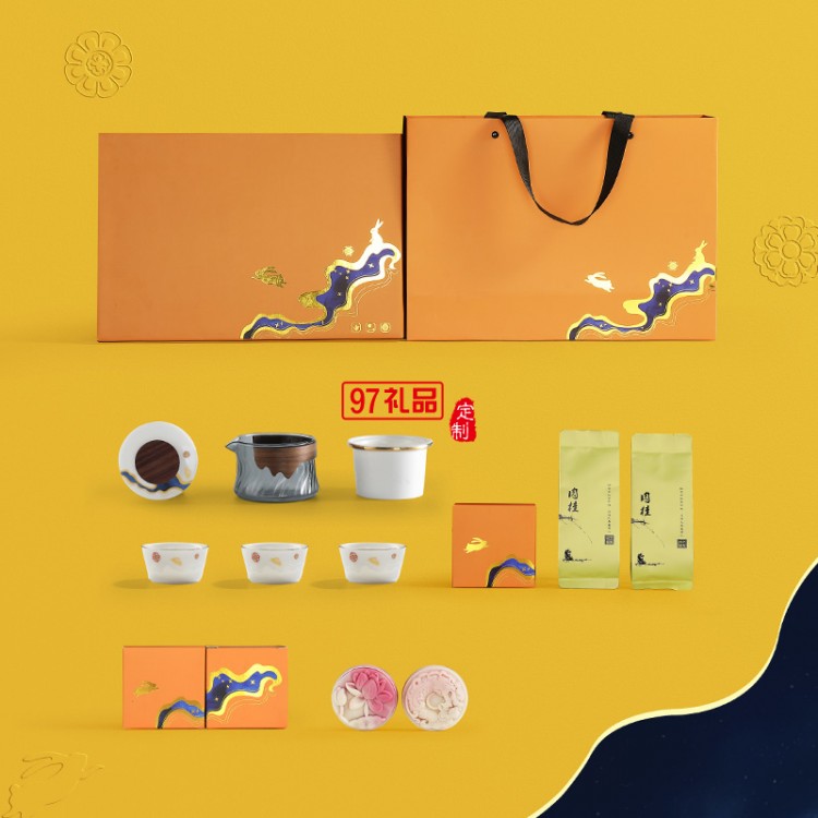 中秋禮品 玉兔奔月手抓茶壺老白茶禮盒羊脂玉茶具套裝
