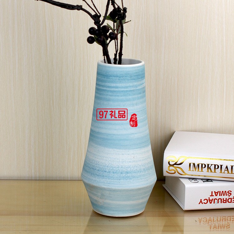 景德鎮(zhèn)陶瓷花瓶套裝 客廳擺件工藝品 藍色螺紋陶瓷兩件套花瓶擺件