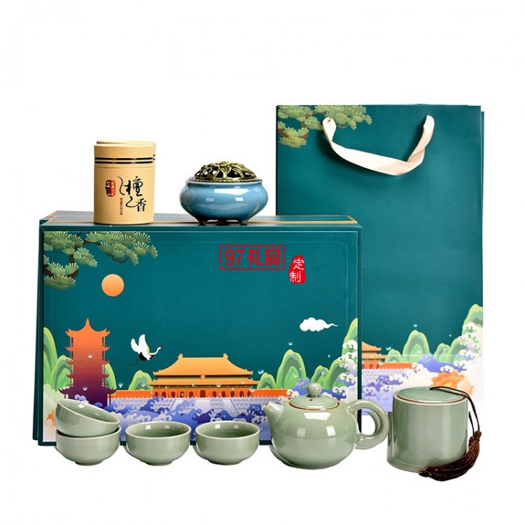 中秋隨手禮哥窯汝窯茶具套裝定制LOGO
